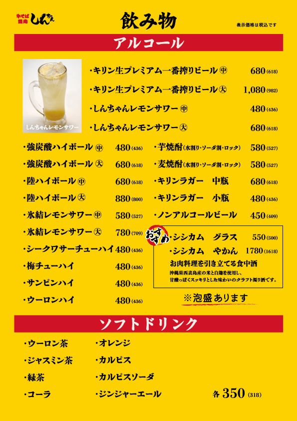 # 2026# デザイン# メニュー# 牛そば焼肉しんちゃん